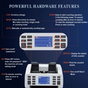 H-8700 Cash Counter with UV, MG, and IR counterfeit detection. High-speed counting, large display, and durable design for retail and financial institutions.